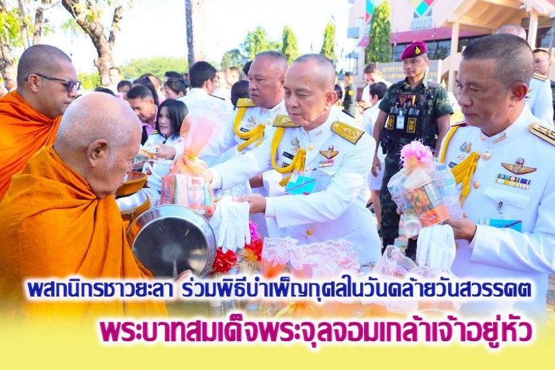 วันนี้ (23 ตุลาคม 2562) เวลา 07.00 น. ที่ บริเวณลานพระบรมราชานุสาวรีย์ พระบาทสมเด็จพระจุลจอมเกล้าเจ้าอยู่หัว รัชกาลที่ 5 สนามโรงพิธีช้างเผือก อำเภอเมือง จังหวัดยะลา นายวรเชษฐ พรมโอภาษ รองผู้ว่าราชการจังหวัดยะลา/ รักษาราชการแทนผู้ว่าราชการจังหวัดยะลา, ส่วนราชการ และประชาชน ในพื้นที่จังหวัดยะลา ร่วมพิธีทำบุญตักบาตรพระสงฆ์ 57 รูป เพื่ออุทิศถวาย เป็นพระราชกุศล เนื่องในวันคล้ายวันสวรรคต พระบาทสมเด็จพระจุลจอมเกล้าเจ้าอยู่หัว รัชกาลที่ 5 23 ตุลาคม 2562 วันปิยมหาราช พร้อมแสดงความจงรักภักดี และน้อมรำลึกในพระมหากรุณาธิคุณของพระองค์ที่ทรงมีต่อพสกนิกรชาวไทยทุกหมู่เหล่า