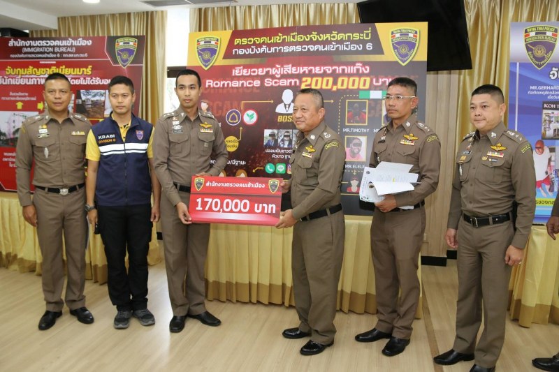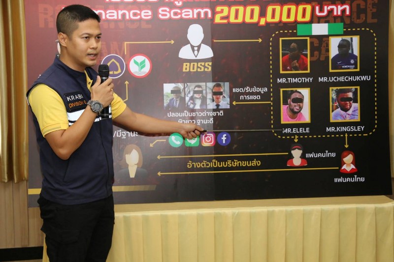 เมื่อวันที่ 16 ก.ค.62 เจ้าหน้าที่สืบสวน ตม.จ.กระบี่ และชุดสืบสวน กก.สส.ภ.จว.กระบี่ ได้ร่วมกันจับกุม นายอีเลเล่ (MR.ELELE) สัญชาติ ไนจีเรีย ข้อหา เป็นบุคคลต่างด้าวหลบหนีเข้ามาและอยู่ในราชอาณาจักรโดยไม่ได้รับอนุญาต ซึ่งจากการสอบสวนขยายผลทราบว่าเป็นเครือข่ายอาชญากรรม romance scam ทำให้นำไปสู่การจับกุม
