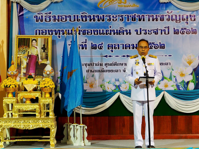 วันนี้ 24 ตุลาคม 2562 เวลา 10.00 น. ณ หอประชุมปาล์ม ศูนย์การศึกษาและพัฒนาชุมชนจังหวัดยะลา อำเภอเมือง จังหวัดยะลา นายวรเชษฐ พรมโอภาษ รองผู้ว่าราชการจังหวัดยะลา/ รักษาราชการแทนผู้ว่าราชการจังหวัดยะลา เป็นประธานในพิธีมอบเงินพระราช ทาน ขวัญถุงกองทุนแม่ของแผ่นดิน ประจำปี 2562