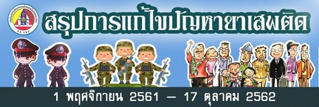 กองอำนวยการรักษาความมั่นคงภายในภาค 4 ส่วนหน้า สรุปผลการปฏิบัติงานการแก้ไขปัญหายาเสพติดในพื้นที่จังหวัดชายแดนภาคใต้ ของศูนย์ปฏิบัติการร่วมอำเภอ 37 อำเภอ (ศปร.อ. 37 อำเภอ) ตั้งแต่ 1 พฤศจิกายน 2561 – 18 ตุลาคม 2562 ดังนี้