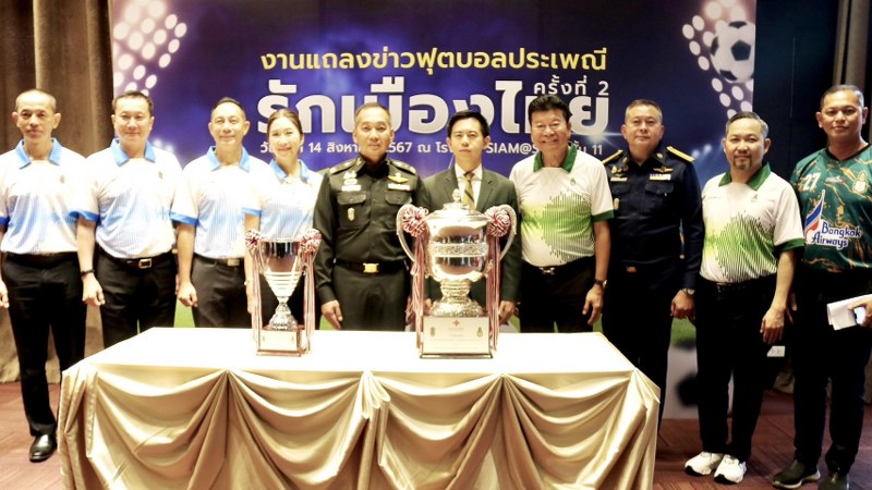 วันที่ 14 สิงหาคม ที่ โรงแรม Siam At Siam Hotel รศ.ดร.อิสระ เสรีวัฒนวุฒิ รองเลขาธิ การ ในฐานะ(ผู้แทนเลขาธิการ)สถาบันพระปกเกล้า, พล.ท.ทักษิณ สิริสิงห ผู้อำนวยการ วิทยาลัยป้องกันราชอาณาจักร, คุณอรรถพล เสือคำรณ ประธานจัดงาน ปปร.27, พล.ท.ฐิตวัชร์ เสถียรทิพย์ อดีตประธานรุ่น และประธานที่ปรึกษา วปอ.66, คุณวิกร ภูวพัชร์ ประธานจัดงาน วิทยาลัยป้องกันราชอาณาจักร, พ.ต.อ.อาภากร โกมลสุทธิ หัวหน้าทีมฟุตบอล สถาบันพระปกเกล้า และพลเรือตรี วิชาญ วันทนี่ยกุล หัวหน้าทีมฟุตบอล วิทยาลัยป้องกันราชอาณาจักร ร่วมแถลงข่าวการแข่งขันฟุตบอลประเพณี “รักเมืองไทย” ครั้งที่ 2 โดย สถาบันพระปกเกล้า และ วิทยาลัยป้องกันราชอาณาจักร