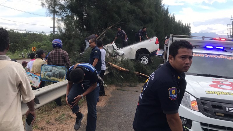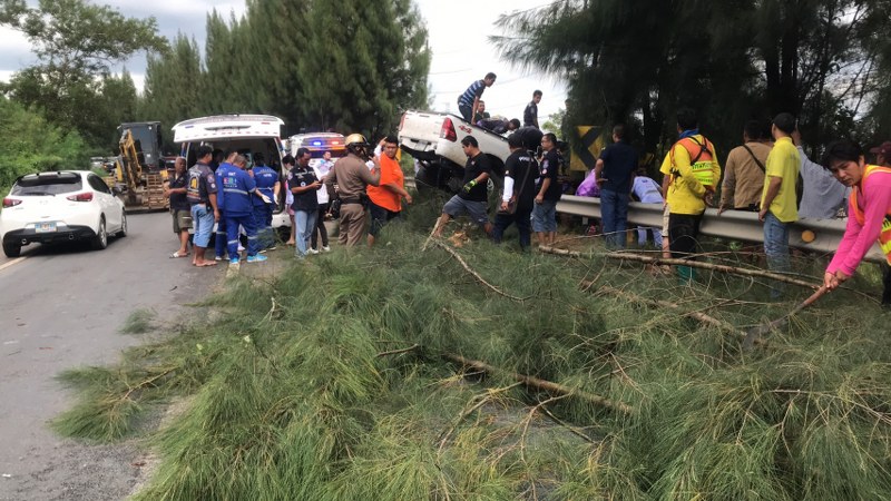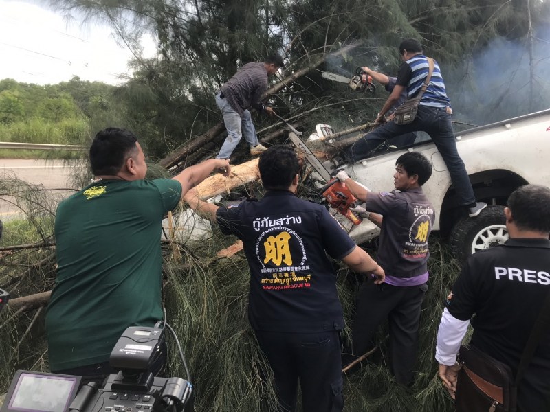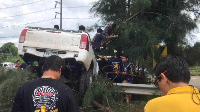 เมื่อไปถึงที่เกิดเหตุ พบรถรถกระบะโตโยต้า รีโว้ สีขาวหมายเลขทะเบียน บย 7777 จันทบุรี ในสภาพชนต้นไม้ ส่งผลให้ต้นไม้ล้มทับด้านหน้าฝากระโปงฝั่งคนขับ ด้านหน้าทั้ง หมด เจ้าหน้าที่กู้ภัยฯจึง รีบใช้อุปกรณ์ตัดถ่ายเข้าช่วยเหลือ เพื่อนำผู้บาดเจ็บออกมา แต่ปรากฏว่าผู้บาดเจ็บทนพิษบาดแผลไม่ไหว เสียชีวิตในที่เกิดเหตุ ตรวจสอบที่เกิดเหตุทราบชื่อผู้เสียชีวิต คือนาย ธีระ แซ่ตั๋น อายุ 32 ปี พักอาศัยอยู่บ้านเลขที่ 13 หมู่ 13 ตำบลพลับ พลา อ.เมือง จังหวัดจันทบุรี