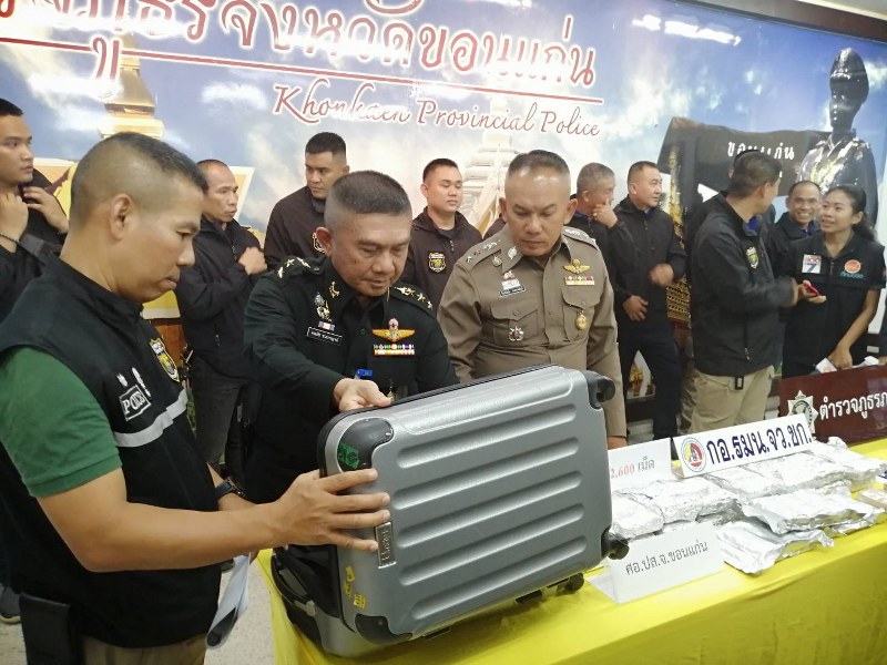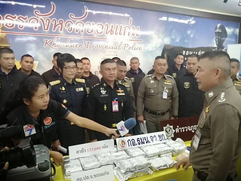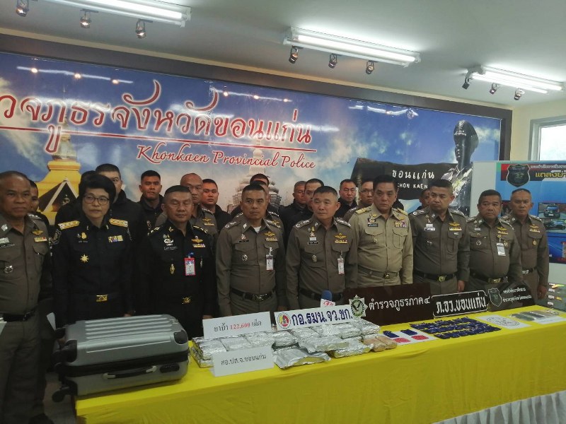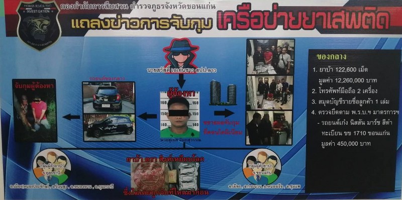 วันนี้ วันจันทร์ที่ 28 ตุลาคม 2562 เวลา 14.30 น. : พ.อ.คณธัช ชนะกาญจน์ รองผอ.รมน.จังหวัดขอนแก่น (ท.) ร่วมแถลงข่าวผลการจับกุมยาเสพติดในพื้นที่ โดยมี นายสมศักดิ์ จังตระกุล ผู้ว่าราชการจังหวัดขอนแก่น/ผอ.รมน.จังหวัดขอนแก่น, พล.ต.ท.เจริญวิทย์ ศรีวนิชย์ ผบช.ภ.4, พล.ต.ปราโมทย์ นาคจันทึก ผบ.มทบ.23 และผู้แทนจากหน่วยงานที่เกี่ยวข้อง ร่วมแถลงข่าวผลการจับกุม ผู้ต้องหาจำนวน 1 คน พร้อมของกลางยาบ้า จำนวน 122,600 เม็ด (มูลค่า 12,260,000 บาท),โทรศัพท์มือถือจำนวน 2 เครื่อง และสมุดบัญชีรายชื่อลูกค้า จำนวน 1 เล่ม