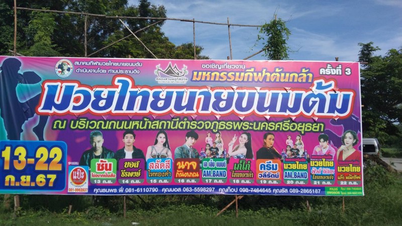 สมาคมกีฬามวยไทย นายขนมต้ม จัดยิ่งใหญ่ 13 ถึง 22 กันยายน 2567 ดำเนินการโดยท่าน ประธานดิ่ง นายกสมาคมมวยไทยจังหวัดพระนครศรีอยุธยา มวยไทย นายขนมต้ม ณ บริเวณ ถนนหน้าสถานีตำรวจภูธรจังหวัดพระนครศรีอยุธยา ค่ำคืน มีดนตรี ดาราดังหลายคณะ สินค้าราคาถูก อาหารพื้นบ้าน ขนมคาวหวาน โดยเฮียแป๊ะบ้านโป่ง ติดต่อสถานที่ 081-9962-837 ติดต่อสอบถาม สั่งจองร้าน และสถานที่ ได้ตลอดเวลา