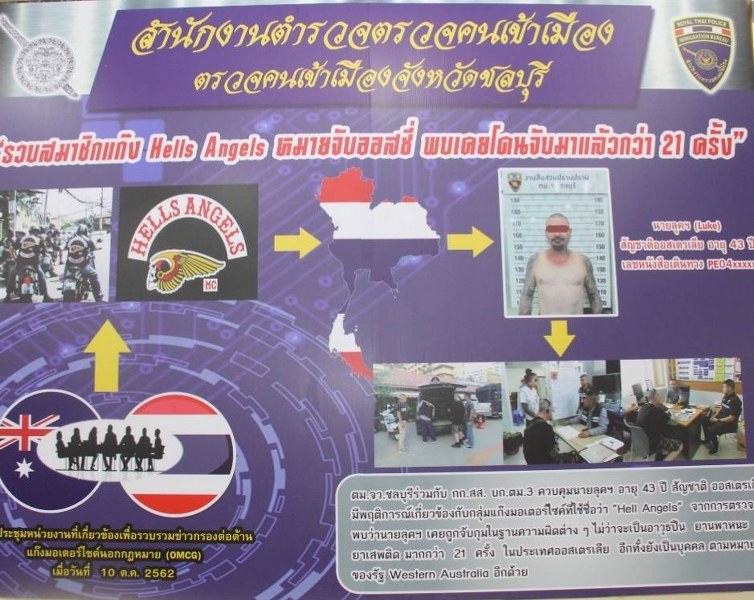 สืบทราบว่านายลุค อายุ 43 ปี สัญชาติ ออสเตรเลีย มีพฤติการณ์เกี่ยวข้องกับกลุ่มแก๊ง มอเตอร์ไซที่ใช้ชื่อว่า “Hell Angels” จึงได้ประสานกับสถานทูตออสเตรเลียเพื่อตรวจสอบ พบว่า นายลุค เคยถูกจับกุมในฐานต่างๆ ไม่ว่าจะเป็นอาวุธปืน ยานพาหนะ และยาเสพติด มาแล้วถึงกว่า 21 ครั้ง ในประเทศออสเตรเลีย อีกทั้งยังเป็นบุคคลตามหมายจับของรัฐ Western Australia อีกด้วย เจ้าหน้าที่ชุดสืบสวน ตม.ชลบุรี จึงได้ดำเนินการเพิกถอนการอนุญาตอยู่ในราชอาณาจักร และควบคุมตัวนายลุค เพื่อดำเนินการส่งตัวให้ทางการออสเตรเลีย ดำเนินการในส่วนของคดีความในประเทศออสเตรเลียต่อไป