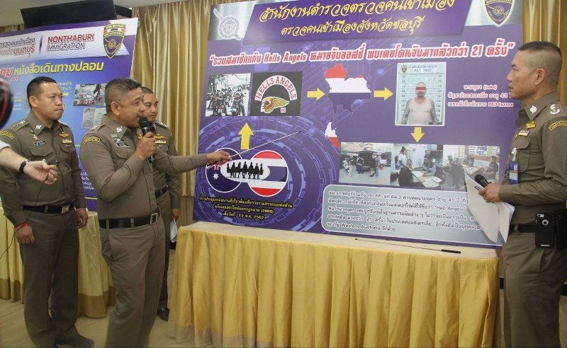 วันนี้ วันจันทร์ที่ 28 ต.ค.62 เวลา 14.00 น.ณ ห้องประชุมมหาเมฆ ชั้น 4 อาคาร 1 สตม. (สวนพลู) สาธร กทม. : พล.ต.ท.สมพงษ์ ชิงดวง ผบช.สตม. พร้อมด้วย พล.ต.ต.อิทธิพล อิทธิสารรณชัย รองผบช.สตม., พล.ต.ต.ณฐพล แสวงกิจ, พล.ต.ต.ปฺฏิพัทธ์ สุบรรณ ณ อยุธยา รองผบช.ตชด.ปฏิบัติราชการ สตม., พล.ต.ต.อาชยน ไกรทอง ผบก.ตม 3,,พ.ต.อ.ภาส สิริสุขะ รองผบก.ตม.3 และ พ.ต.อ.สัมพันธ์ เหลืองสัจจกุล ผกก.ตม.จ.ชลบุรี พร้อมชุดสืบสวน ร่วมแถลงข่าวการจับกุมคนร้ายตามหมายจับของประเทศออสเตรเลีย สมาชิกแก๊งมอเตอร์ไซค์ Hells Angels