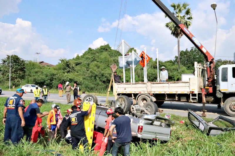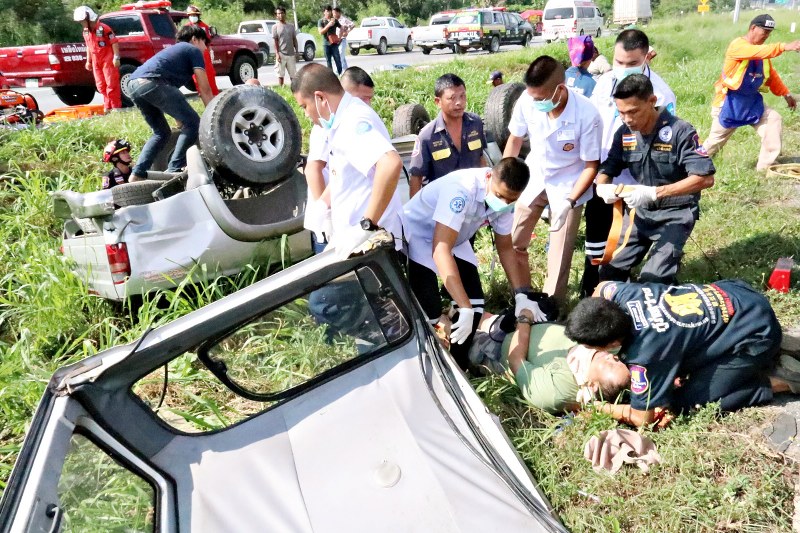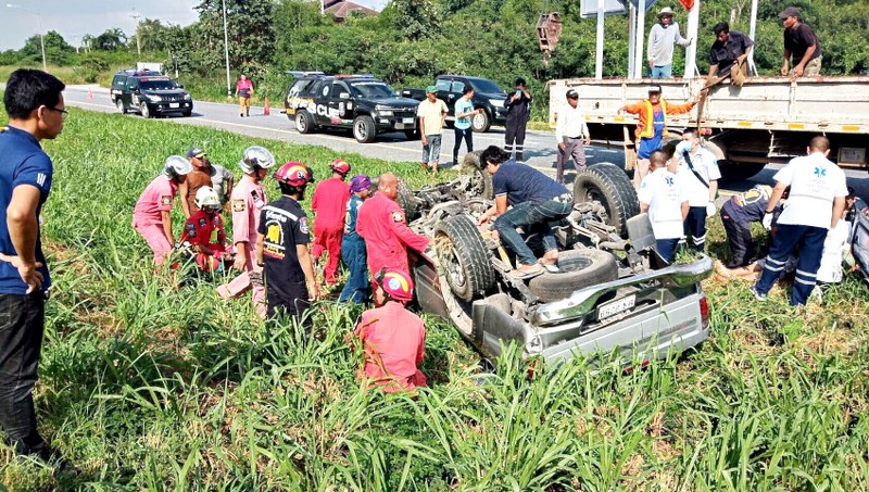 เมื่อเวลา 15.30 น. ของวันที่ 28 ต.ค.62 พ.ต.ท.เอกชัย มูลลี สารวัตร (สอบสวน) สภ. พลูตาหลวง จ.ชลบุรี ได้รับแจ้งรถกระบะ เสียหลักลงร่องน้ำเกาะกลางถนน พลิกคว่ำ มีผู้ได้รับบาดเจ็บติดอยู่ภายในตัวรถ บนถนนสาย 331 สายสัตหีบ–เขาหินซ้อน ขาเข้าสัตหีบ ช่วงปากทางเข้า หน้าศูนย์รับเลี้ยงสุนัขจรจัดพลูตาหลวง จึงรุดไปตรวจสอบ พร้อมชุดอุปกรณ์ตัดถ่าง หน่วยกู้ภัยมูลนิธิสว่างโรจนธรรมสถาน หน่วยกู้ชีพโรงพยาบาลสมเด็จพระนางเจ้าสิริกิติ์ กรมแพทย์ทหารเรือ งานป้องกันและบรรเทาสาธารณภัยเทศบาลตำบลเขตรอุดมศักดิ์