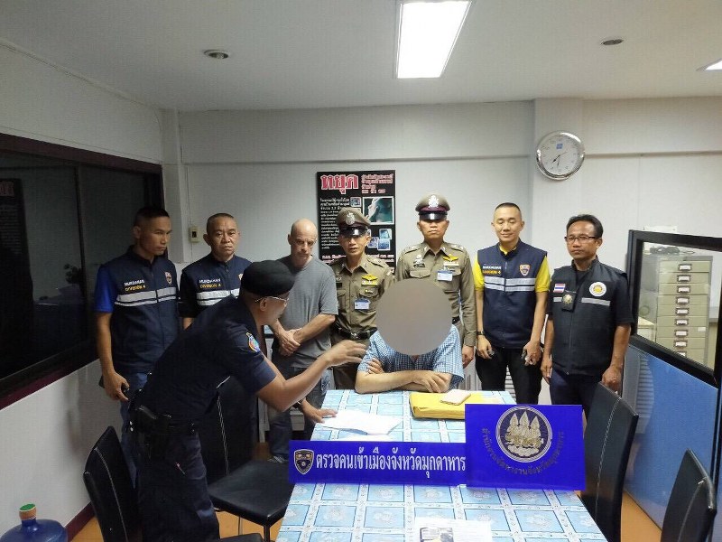 จากการตรวจสอบหนังสือเดินทางเล่มดังกล่าว พบว่าผู้ถูกจับเดินทางเข้ามาอยู่ในราชอาณาจักรโดยถูกต้องตามกฎหมาย แต่จากการตรวจสอบพบว่าผู้ถูกจับไม่มีใบอนุญาตทำงานแต่อย่างใด จากการสอบถามผู้ถูกจับผ่านล่ามแปล(MR.MCPHERSON JR JOHN RICHARD) ผู้ถูกจับให้การรับว่า ตนขออยู่ต่อในราชอาณาจักร เพื่อใช้ชีวิตบั้นปลายและได้มาทำงานเปิดร้านขายอาหารอยู่ที่ตลาดแห่งนี้ โดยไม่มีใบอนุญาตทำงานแต่อย่างใด เจ้าหน้าที่จึงได้แจ้งให้ทราบว่าการกระทำดังกล่าวเป็นความผิดตามกฎหมาย โดยกล่าวหาว่า “เป็นคนต่างด้าวทำงานโดยไม่ได้รับอนุญาตและเป็นคนต่างด้าวได้รับอนุญาตให้อยู่ในราชอาณาจักรชั่วคราว ประกอบอาชีพหรือรับจ้างทำงานโดยไม่ได้รับอนุญาต” และได้แจ้งสิทธิตามกฎหมายในขณะจับกุมให้ผู้ถูกจับทราบด้วยแล้ว จากนั้นจึงนำผู้ถูกจับกุมมายังที่ทำการ ตม.จว.มุกดาหาร เพื่อทำบันทึกจับกุมและนำตัวผู้ต้องหาส่งพนักงานสอบสวน สภ.เมืองมุกดาหาร ดำเนินคดีตามกฎหมายต่อไป.