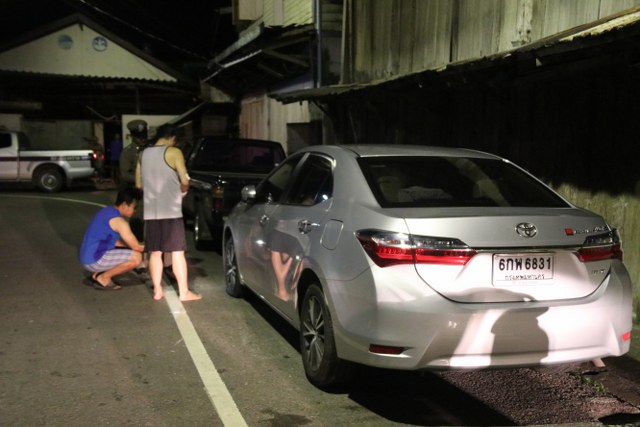 ที่เกิดเหตุพบรถยนต์เก๋งโตโยต้าสีบอร์นซ์ หมายเลขทะเบียน 6กพ-6831 กทม.มีรอยถูกชนด้านหน้าและด้านข้างเล็กน้อย ในที่เกิดเหตุพบรถจักรยานยนต์สีเขียวขาว หมายเลขทะเบียน 1กต-223 ตราด จอดทิ้งอยู่ ส่วนผู้ขับขี่หายไปจากที่เกิดเหตุ และพบนายนิรุต ได้รับบาดเจ็บจากถูกรอยเล็บข่วนและรอยกัดที่บริเวณแขน ขา ลำตัวและใบหน้า จึงให้อาสาสมัครกู้ภัยสมาคมตราดพุทธสงเคราะห์ช่วยทำบาดแผลให้ ขณะกำลังทำบาดแผลอยู่ ผู้ขับขี่รถจักรยานยนต์คู่กรณี มาพบในสภาพเมาสุราและเกิดการโต้เถียงกันขึ้น เจ้าหน้าที่ตำรวจจึงควบคุมตัวคนขับขี่รถจักรยานยนต์ไว้ ทราบชื่อในเวลาต่อมาว่า นางวราภร ผกามาศ