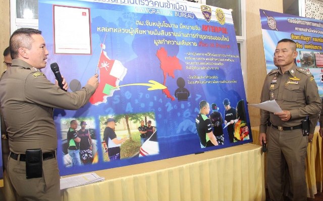 พล.ต.ต.พรชัยฯ กล่าวว่า สืบเนื่องมาจากการประสานงานความร่วมมือการทำงานระหว่างสำนักงานตำรวจแห่งชาติ และสำนักงานตำรวจประเทศโอมาน เรื่อยมา และในการประชุมตำรวจสากลที่ประเทศชิลี เมื่อช่วงกลางเดือนตุลาคม 2562 ตำรวจสากลประจำประเทศโอมาน ได้ขอความร่วมมือให้ สตม. ติดตามจับกุม MR.SAIF สัญชาติ โอมาน อายุ 27 ปี ซึ่งเป็นคนร้ายตามหมายจับตำรวจสากล กรณีกระทำความผิดฐาน ฉ้อโกงและหลอกหลวงผ่านการทำธุรกรรมออนไลน์ ซึ่งมีผู้เสียหายหลายสิบราย รวมมูลค่าประมาณ 10 ล้านบาท ซึ่งหลายรายอยู่ระหว่างการสอบสวนและดำเนินคดี แม้ผู้ต้องหารายนี้ได้หลบหนีออกจากประเทศโอมานแล้ว แต่ก็ยังหลอกลวง และฉ้อโกงคนในประเทศโอมาน ซึ่งมีผู้เสียหายมากกว่า 10 ราย ผ่านธุรกรรมออนไลน์อย่างต่อเนื่อง โดยใช้เงินที่หาได้ท่องเที่ยวตามประเทศในภูมิภาคอาเซียน รวมถึงประเทศไทย