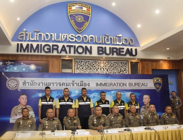 วันนี้ วันพุธที่ 30 ต.ค.62 เวลา 14.30 น.ณ ห้องโถงชั้นล่าง อาคาร 2 สตม.(สวนพลู) สาธร กทม. : พล.ต.ท.สมพงษ์ ชิงดวง ผบช.สตม. พร้อมด้วย พล.ต.ต.พรชัย ขันตี, พล.ต.ต. อิทธิพล อิทธิสารรณชัย, พล.ต.ต.สุรพงษ์ ชัยจันทร์, พล.ต.ต.ณฐพล แสวงกิจ, พล.ต.ต.ชูฉัตร ธารีฉัตร รอง ผบช.สตม., พล.ต.ต.ปฺฏิพัทธ์ สุบรรณ ณ อยุธยา รองผบช.ตชด. ปฏิบัติราชการ สตม., พล.ต.ต.พรชัย ขจรกลิ่น ผบก.สส.สตม., พ.ต.อ.สถิตย์ พรมอุทัย รองผบก.สส.ภ.2 ปฏิบัติราชการ สตม., พ.ต.อ.พงษ์นคร นครสันติภาพ รองผบก.สส.สตม., พ.ต.อ.ปฏิญญา จีรชนาสิน ผกก.กก.4 บก.สส.สตม., พ.ต.อ.วรพจน์ รุ่งกระจ่าง ผกก.สส. บก.น.4,พ.ต.ท.เอกสิทธิ์ ปานสีทา รองผกก.4 บก.สส.สตม., พ.ต.ท.จักริน พิริยะจิตตะ รอง ผกก.สส.บก.น.4 และ พ.ต.ต.นนท์สมรรถ โบว์สุวรรณ สว.กก.4 บก.สส.สตม. ร่วมแถลงข่าวการจับกุมคนร้าย ดังนี้