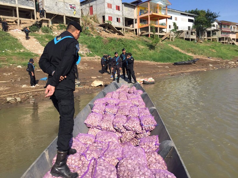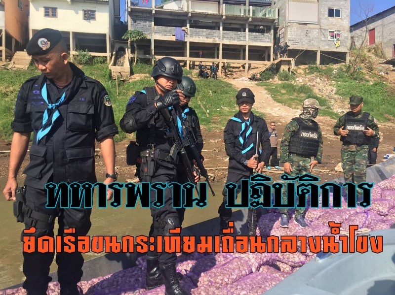 จึงนำกำลังไปดักซุ่มดู ได้พบเรือกีบเหล็กติดเครื่องยนต์หางยาว ขนกระสอบกระเทียมสีชมพูเต็มลำเรือ ขับมาด้วยความเร็วข้ามมาจากฝั่งประเทศเพื่อนบ้าน โดยมีชายไม่ทราบสัญชาติ เป็นคนขับเรือส่วนอีกคนนั่งหัวเรือเห็นเจ้าหน้าที่ชายทั้ง 2 กระโดดลงน้ำโขงหลบหนี ส่วนกลุ่มชายฉกรรจ์ จำนวน 7-8 คน อยู่ริมฝั่งเตรียมแบกกระสอบกระเทียมขึ้นฝั่ง นำไปซุกในโกดังริมฝั่งโขง เห็นเจ้าหน้าที่ต่างพากันวิ่งหลบหนี