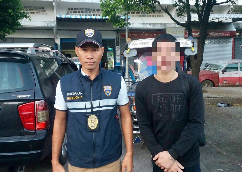 สถานที่จับกุม บริเวณสถานีขนส่งผู้โดยสารจังหวัดมุกดาหาร ต.มุกดาหาร อ.เมืองมุกดาหาร จ.มุกดาหาร