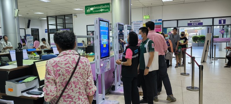 น่าน – ผู้อำนวยการโรงพยาบาลน่าน เจ้าหน้าที่ อาสาสมัครสาธารณสุขเขตเทศบาลเมืองน่าน และเจ้าหน้าที่ของ โรงพยาบาลน่าน มาคอยให้บริการ โดยจะเปิดให้บริการตั้งแต่ เวลา 06.00 น. ที่มาตรงนัด ต้องเจาะเลือด โดยให้ผู้ป่วยมาตรงตามนัด เข้าไปใช้บริการ ตู้Smart Hospital Kiosk ตู้เสียบบัตรคิวอัตโนมัติ วันที่ 2 ราบรื่นเป็นระเบียบ