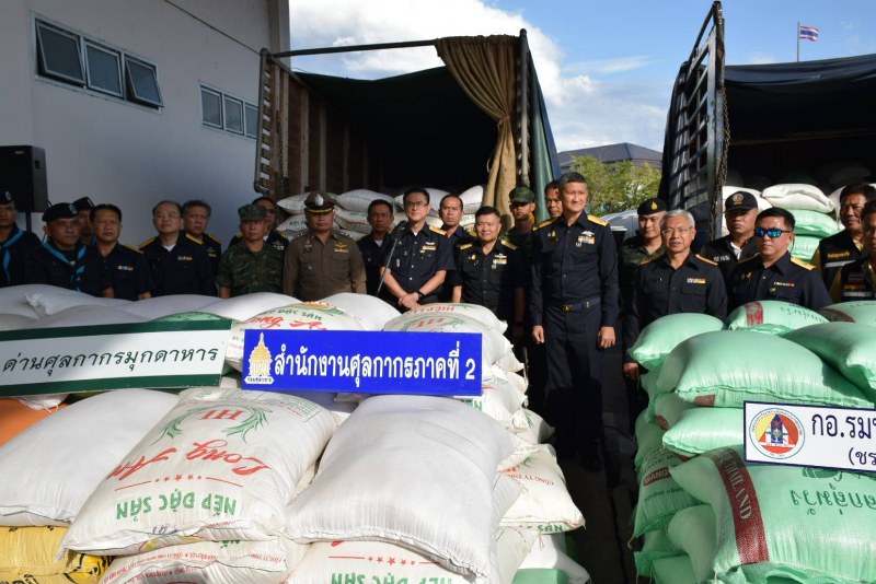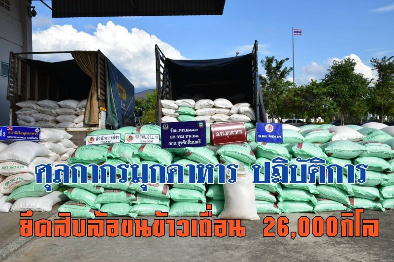 (แถลงข่าว) มุกดาหาร เจ้าหน้าที่ด่านศูลกากร ร่วมกับ หน่วยงานความมั่นคงในพื้นที่ กอ.รมน.มุกดาหาร, ทหารพรานที่ 2110, กกล.สุรศักดิ์มนตรี, นรข.มุกดาหาร, ตชด.234 มุกดาหาร, ตร.ภูธรมุกดาหาร ร่วมกันสกัดจับรถบรรทุก 10 ล้อ จำนวน 2 คัน บรรทุกข้าวสารเถื่อน ที่ลักลอบนำเข้าโดยไม่ผ่านพิธีการศุลกากร ลำเลียงข้ามโขงมาขึ้นตามแนวชายแดนมุกดาหาร เตรียมส่งนายทุน ถูกเจ้าหน้าที่ตรวจจับยึด น้ำหนักรวมทั้งสิ้น 26,000 กิโลกรัม มูลค่ารวมประมาณ 600,000 บาท พร้อมผู้ต้องหา 2 ราย