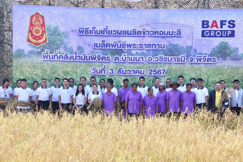 เมื่อวันที่ 3 ธันวาคม 2567 พลตรี ชายแดน กฤษณสุวรรณ รองแม่ทัพภาคที่ 3 เป็นผู้แทน แม่ทัพภาคที่ 3 เป็นประธานในพิธีเก็บเกี่ยวผลผลิตข้าวหอมมะลิ เมล็ดพันธุ์พระราชทาน ที่แปลงนาข้าวเกษตรอินทรีย์ คลังน้ำมันจังหวัดพิจิตร ตำบลบ้านนา อำเภอวชิรบารมี จังหวัดพิจิตร หม่อมหลวง ณัฐสิทธิ์ ดิศกุล กรรมการผู้อำนวยการใหญ่ บริษัทบริการเชื้อเพลิงการบินกรุงเทพ จำกัด (มหาชน) หรือ BAFS Group ร่วมให้การต้อนรับ โดยมี พลเอกวิจักขฐ์ สิริบรรสพ ที่ปรึกษาพิเศษประจำสำนักมูลนิธิชัยพัฒนา พลเอก ทรงวุฒิ จิตตานนท์ ผู้ประสานงานโครงการทหารพันธุ์ดี ร่วมกิจกรรมในการเกี่ยวข้าว ร่วมกับกำลังพลและพี่น้องเกษตรกร