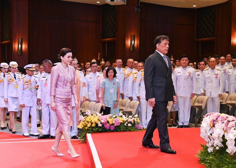 วันนี้ (๒๒ ธ.ค. ๒๕๖๗) เวลา ๑๗.๒๗ น. พระบาทสมเด็จพระเจ้าอยู่หัว และสมเด็จพระนางเจ้า ฯ พระบรมราชินี เสด็จพระราชดำเนินไปในพิธีทูลเกล้าทูลกระหม่อมถวายฉลองพระองค์ครุยพระบรมราชูปถัมภก และทอดพระเนตรการแสดงดนตรีเฉลิมพระเกียรติ พระบาทสมเด็จพระเจ้าอยู่หัว เนื่องในโอกาสพระราชพิธีมหามงคลเฉลิมพระชนมพรรษา ๖ รอบ ๒๘ กรกฎา คม ๒๕๖๗ “รวมใจภักดิ์ เฉลิมทศมจักรีนฤบดินทร์ : มหาดุริยางค์ไทย-สากล เฉลิมพระเกียรติพระบาทสมเด็จพระเจ้าอยู่หัว” ณ หอประชุมจุฬาลงกรณ์มหาวิทยาลัย เขตปทุมวัน กรุงเทพ มหานคร