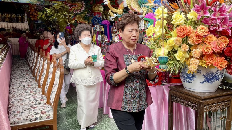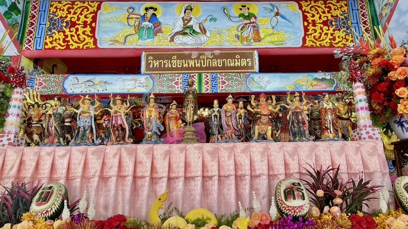 ซึ่งในพิธี”กงจู่เทียน“จะมีการสวดพระคาถามหากรุณาธารณีสูตร เพื่ออ้างคุณแห่งพระสูตรและอาราธนาบารมีของพระอวโลกิเตศวรโพธิสัตว์มาชำระล้างมลฑลพิธี เพื่อคอยต้อนรับเหล่าเทพเทวดาทั้งหลายที่จะอัญเชิญมายังมลฑลพิธี และมีการสวดสรรเสริญและอัญเชิญพระพุทธองค์ คุณแห่งพระรัตนตรัย และองค์เทพธรรมบาลต่างๆทั้ง 24 พระองค์ มารับเครื่องสักการะบูชา ตามด้วยพระคาถาต่างๆ และถวายเครื่องสักการะ อาหาร ผลไม้ และดอกไม้ต่างๆ ไม่ซ้ำกัน พร้อมมีการจัดถ้วยข้าว ช้อน ตะเกียบ ถ้วยน้ำชา จัดไว้ 24 ชุด ประดับตกแต่งอย่างวิจิตรบรรจง จากนั้นก็ได้อัญเชิญองค์เทพธรรมบาลทั้ง 24 พระองค์ ประดิษฐานภายในวิหารเซียนพันปีกัลยาณมิตร เพื่อปกปักษ์คุ้มครองพระสัทธรรมและเหล่าพุทธบริษัทให้บำเพ็ญบุญบารมีไต้ราบรื่น โดยมิมีมารและภยันตรายใดๆ มาแผ้วพานต่อพระศาสนาและผู้บำเพ็ญธรรมทั้งหลายสืบไป