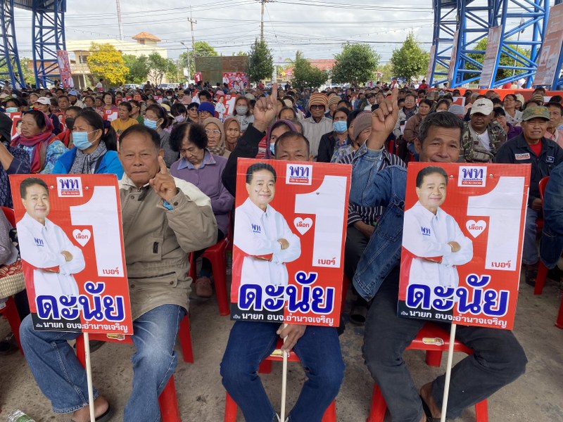 กลุ่มสมาชิก พรรคเพื่อไทยเขตพื้นที่อีสานใต้ นายดะนัย มะหิพันธ์ ผู้สมัครรับเลือกตั้งนายก อบจ.อำนาจเจริญ และผู้สมัคร ส.อบจ. จัดปราศรัย..นโยบายสู่การเปลี่ยนแปลงการพัฒนาจังหวัดอำนาจเจริญ ต้องพัฒนาไปสู่สิ่งที่ดีที่สุด