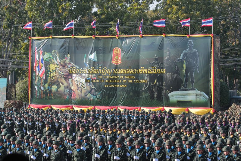 ต่อมาเวลา 15.55 น. แม่ทัพภาคที่ 2 เป็นประธานในพิธีกระทำสัตย์ปฏิญาณตนต่อธงชัยเฉลิมพล ของหน่วยทหารในพื้นที่จังหวัดนครราชสีมา ใช้กำลังสวนสนามทั้งสิ้น 1,873 นาย โดยมี พันเอก ณรงค์ วิชญาณวรวุฒิ รองผู้บัญชาการกองพลทหารราบที่ 3 เป็นผู้บังคับการกองผสม ประกอบด้วย 1กองบังคับการกองผสม, 4 กรม, 17 กองพัน และ 2 กองร้อยวิ่ง และแม่ทัพภาคที่ 2 นำกำลังพลที่ร่วมในพิธีทุกนายเปล่งสัจจะวาจาปฏิญาณตนต่อธงชัยเฉลิมพล อันแสดงถึงความพร้อมเป็นทหารของชาติโดยสมบูรณ์