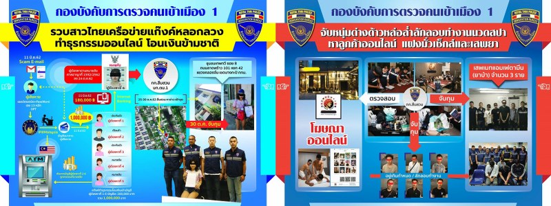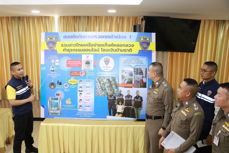 คดีที่ 1 ตม.1 รวบสาวไทยเครือข่ายแก๊งหลอกลวงทำธุรกรรมออนไลน์โอนเงินข้ามชาติ