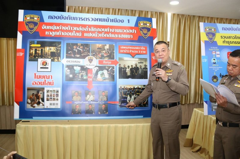 ตม.1 รวบสาวไทยเครือข่ายแก๊งหลอกลวงทำธุรกรรมออนไลน์โอนเงินข้ามชาติและจับหนุ่มต่างด้าวหล่อล่ำลักลอบทำงานนวดสปาหาลูกค้าออนไลน์ แฝงมั่วสุมเซ็กส์และเสพยา