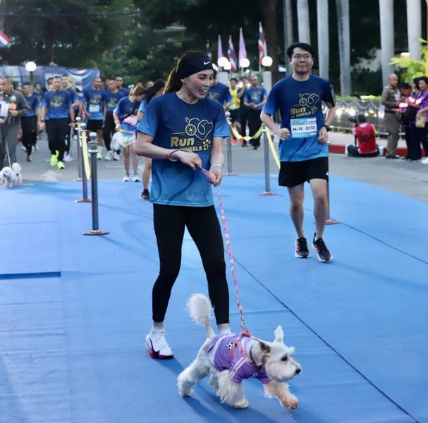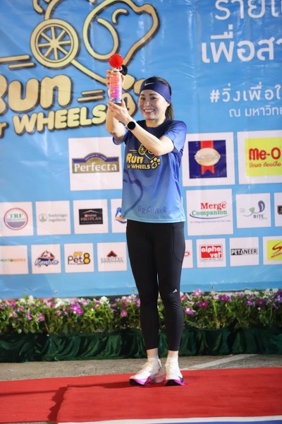 เมื่อเสด็จพระราชดำเนินถึงคณะสัตวแพทยศาสตร์ มหาวิทยาลัยเกษตรศาสตร์ บางเขน นายดำรงค์ศรีพระราม รักษาการแทนอธิการบดีมหาวิทยาลัยเกษตรศาสตร์ นายคงศักดิ์ เที่ยงธรรม คณบดีคณะสัตวแพทยศาสตร์ พร้อมด้วยคณะจัดการแข่งขัน ฯ เฝ้าทูลละอองธุลีพระบาทรับเสด็จ จากนั้นทรงพระดำเนินไปยังจุด START พระราชทานพระบรมราชวโรกาสให้ นายดำรงค์ ศรีพระราม รักษาการแทนอธิการบดีมหาวิทยาลัยเกษตรศาสตร์ กราบบังคมทูลรายงานการจัดงานการแข่งขันวิ่ง โครงการ “รัน ฟอร์ วีลส์#4 (Run for Wheels#4) วิ่งเพื่อให้หมาได้วิ่ง ครั้งที่ 4” ต่อจากนั้น ทรงกดแตรสัญญาณปล่อยขบวนนักวิ่ง และนักวิ่งพร้อมสุนัข ระยะ 10 กิโลเมตร ในโอกาสนี้ สมเด็จพระนางเจ้า ฯ พระบรมราชินี ทรงร่วมกิจกรรมวิ่ง ระยะ 10 กิโลเมตร ด้วย