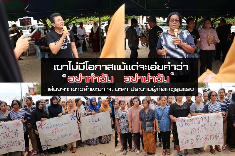 ชาวบ้านตำบลลำพะยา รวมกลุ่มพลังมวลชนรณรงค์ และนักเรียนวัดลำพะยาต่อต้านความรุนแรง เหตุคนร้ายลอบยิงชุด ชรบ.เสียชีวิต 15 ราย ณ วัดสิริปุณณาราม (วัดลำพะยา) ต.ลำพะยา อ.เมือง จ.ยะลา