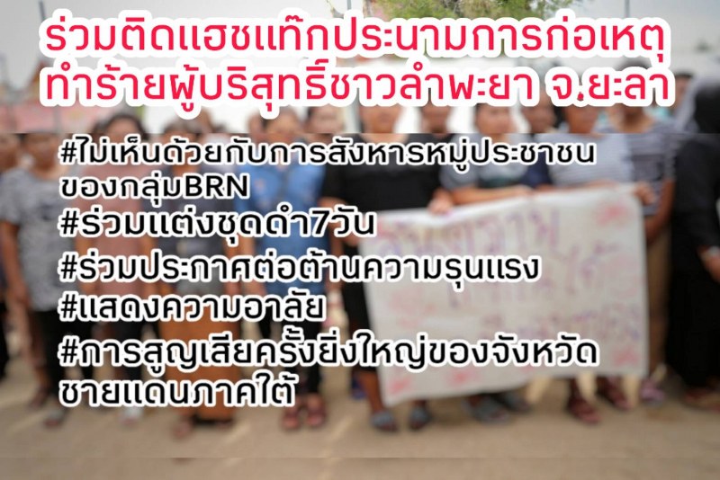 ร่วมติดแฮชแท๊กประนามผู้ก่อเหตุทำร้ายโจมตีผู้บริสุทธิ์ ชรบ. ชาวบ้านลำพะยา จ.ยะลา