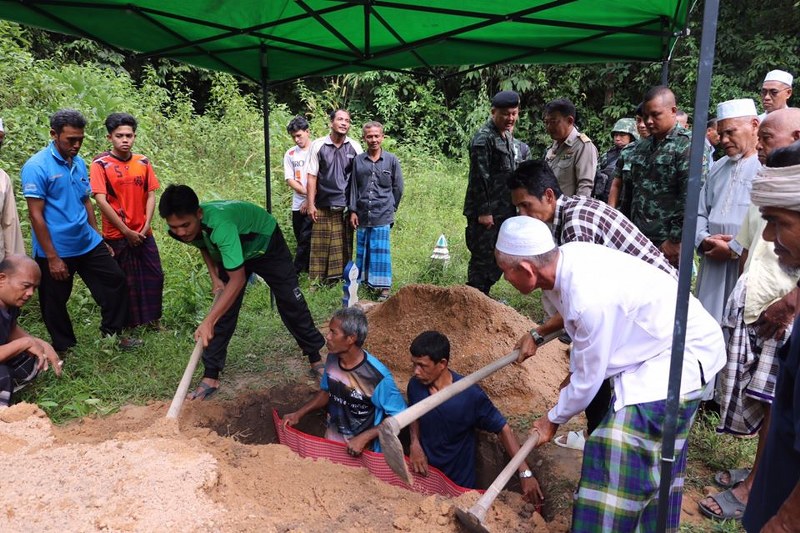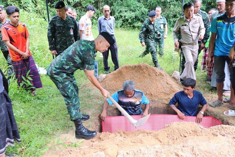 ผู้บังคับหน่วยเฉพาะกิจยะลา ร่วมพิธีฝังศพผู้เสียชีวิต จากกรณีเหตุคนร้ายยิงถล่มป้อม ชรบ.บ้านทางลุ่ม ตำบลลำพะยา อำเภอเมือง จังหวัดยะลา