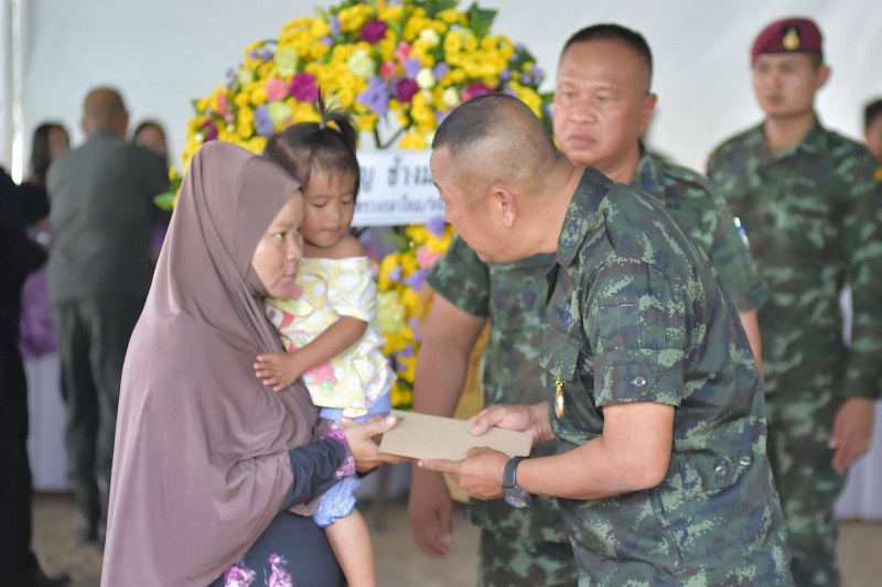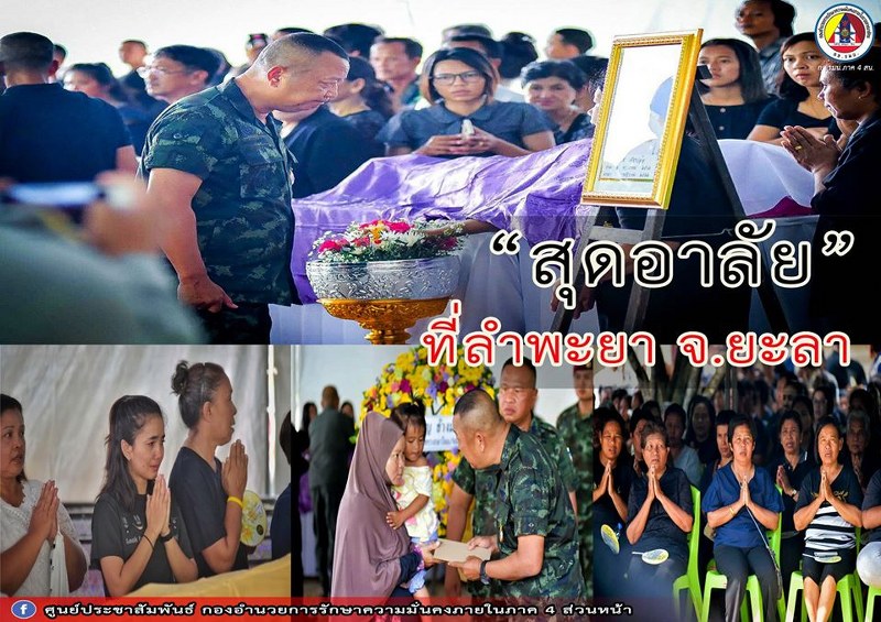 แม่ทัพภาคที่ 4 เป็นประธานพิธีรดน้ำศพผู้เสียชีวิต จาเหตุคนร้ายยิงถล่มป้อม ชรบ.บ้านทางลุ่ม ตำบลลำพะยา อำเภอเมือง จังหวัดยะลา