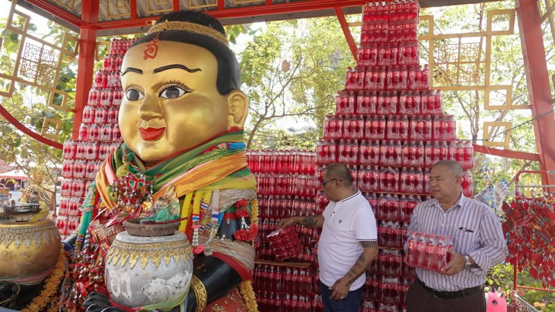 ด้าน โป๊งเหน่ง เชิญยิ้ม กล่าวว่า หลังจากที่ตนเองและโกอั้น ได้ร่วมกันซื้อหวยแล้ว ได้รับเงินรางวัลจำนวน 150,000 บาท จึงได้นำเงินจำนวนหนึ่งมาซื้อน้ำแดง เพื่อนำมาถวายแก้บนกับกุมารเจ้าสัวเฮง หลังจากถวายแล้ว จะนำน้ำแดงเหล่านี้ไปทำประโยชน์โดยมอบให้กับเด็ก ๆ ชาวเขาเด็กดอยที่อยู่ห่างไกล ซึ่งจะเดินทางในช่วงเดือนธันวาคม 2562 ไปที่จังหวัดเชียงใหม่ เพื่อมอบน้ำแดงน้ำอัดลมให้กับเด็ก ๆเหล่านั้น