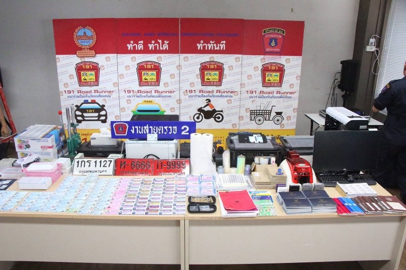 ต่อมาเจ้าหน้าที่ตำรวจจึงสืบสวนติดตามตัวและพบนายธงไชยฯ ที่ลานจอดรถห้างฟู๊ดแลนด์ดังกล่าว จึงเข้าจับกุมตัวก่อนขยายผลพาเข้าตรวจห้องพักเลขที่ 912 ชั้น 30 คอนโดฯย่านรามคำแหง ก่อนจะพบของกลางต่างๆ จำนวนมาก สอบสวนผู้ต้องหารับว่ามีนายหน้าสั่งให้ผลิตบัตรต่างๆ โดยมีราคาบัตรประชาชน 5,000 บาท ใบขับขี่ 4,000 บาท บัตรต่างด้าว 3,000 บาท ก่อนคุมตัวพร้อมนำของกลางส่งพนักงานสอบสวนดำเนินการตามกฎหมาย และขยายผลสืบสวนหาตัวผู้สั่งซื้อหรือผู้ที่มีภาพหน้าบัตรต่างๆ มาดำเนินคดีตามกฎหมายต่อไป