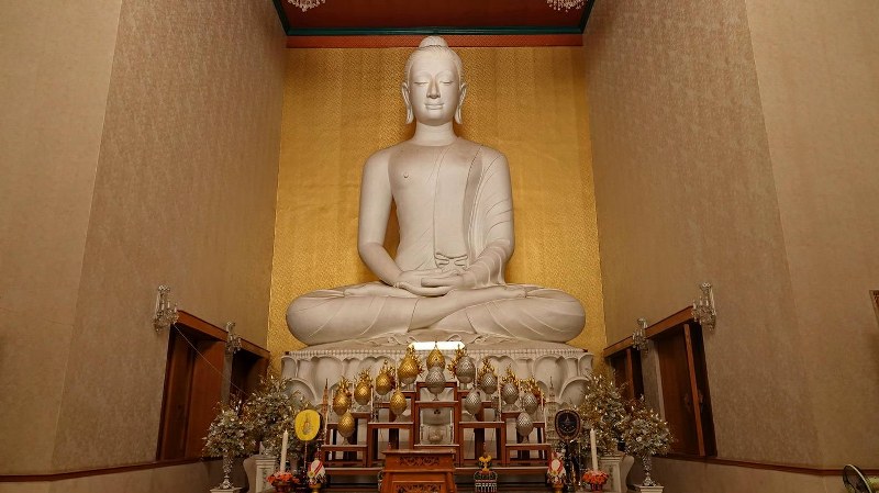 ในอุโบสถจะมีพระประธานที่ประดิษฐานอยู่เป็นพระประธานแบบคันธราช ได้รับความเมตตาจากสมเด็จพระพุทธชินวงศ์ กรรมการมหาเถระสมาคม เจ้าคณะใหญ่หนกลาง เจ้าอาวาสเจ้าอาวาสวัดพิชยญาติการามวรวิหาร ได้ประทานชื่อให้คือ “สมเด็จพระสุวรรณปทุมพุทธพจนวราภรณ์” หรือพุทธบริษัทเขตฐานลานนี้จะเรียกว่า “หลวงพ่อใจดีมั่งมีศรีสุข” นั้นก็คือใครที่มีที่อุโบสถหลังนี้แล้วก็จะขอพรขอบารมี ประสบความสำเร็จ ในสิ่งที่ตนปรารถนา