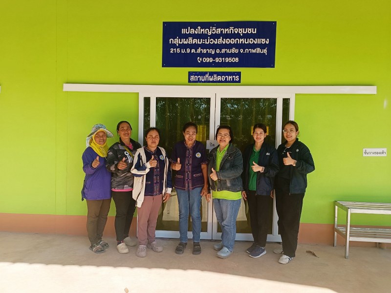 จากการติดตาม พบว่า กลุ่มแปลงใหญ่วิสาหกิจชุมชนกลุ่มมะม่วงส่งออกหนองแซง เริ่มจดทะเบียนเป็นวิสาหกิจชุมชน เมื่อปี 2558 และเข้าร่วมโครงการส่งเสริมระบบการเกษตรแบบแปลงใหญ่ ระหว่างปี 2565 ภายใต้การสนับสนุนจากกรมส่งเสริมการเกษตร โดยสำนักงานเกษตรอำเภอสามชัย จังหวัดกาฬสินธุ์ ปัจจุบันมีพื้นที่ปลูก 300 ไร่ มีสมาชิก 31 ราย ได้รับการรับรองมาตรฐาน GAP ทุกราย โดยมีนางสุดจรัส พันกุล เป็นประธานกลุ่ม ซึ่งกลุ่มได้รับการสนับสนุนองค์ความรู้ และการส่งเสริมจากหน่วยงานภาครัฐในด้านการเพิ่มประสิทธิภาพการผลิต การลดต้นทุนและเพิ่มผลผลิต โดยการผลิตน้ำหมักและปุ๋ยชีวภาพเพื่อทดแทนการใช้สารเคมี การใช้นวัตกรรม เช่น ระบบน้ำแบบมินิสปริงเกอร์ร่วมกับแผงโซลาร์เซลล์ การใช้ตู้อบลมร้อน เครื่องกวน เครื่องอัดกระป๋อง เครื่องซีลบรรจุภัณฑ์แบบกึ่งอัตโนมัติ สามารถพิมพ์ตัวเลขระบุวันผลิตและวันหมดอายุของผลิตภัณฑ์พร้อมซีลในขั้นตอนเดียว เพื่อทำให้ผลิต ภัณฑ์แปรรูปสามารถเก็บรักษาได้นาน มีคุณภาพ และปลอดภัยต่อผู้บริโภค การบริหารจัดการด้านตลาด การสร้างมูลค่าเพิ่มโดยการแปรรูปสินค้าเกษตร เพื่อให้เกษตรกรมีรายได้เพิ่มขึ้น มีความเข้มแข็ง สามารถพึ่งพาตนเองได้ รวมถึงการพัฒนาศักยภาพของเกษตรกรสู่ Smart Farmer และการส่งเสริมการเป็นผู้ประกอบการหรือนักธุรกิจเกษตร