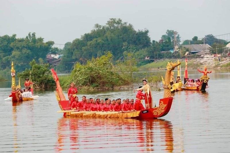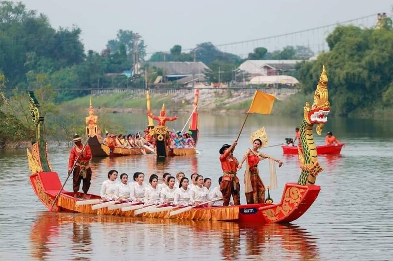 งดงามกลางลำน้ำยม ขบวนเรือกฐินทางน้ำชาวศรีสัชนาลัย
