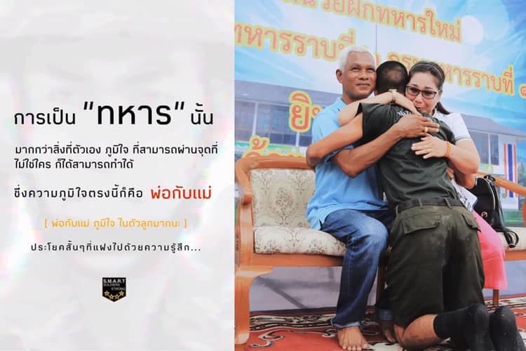 การเป็น “ทหาร” นั้นมากกว่าสิ่งที่ตัวเอง ภูมิใจ ที่สามารถผ่านจุดที่ไม่ใช่ใคร ก็ได้ สามารถทำได้ ซึ่งความภูมิใจตรงนี้ก็คือ พ่อกับแม่ [ พ่อกับแม่ ภูมิใจ ในตัวลูกมากนะ ] ประโยคสั้นๆที่แฝงไปด้วยความรู้สึก…