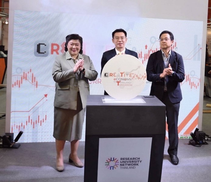 เมื่อวันที่ 16 มิถุนายน 2568 : ศาสตราจารย์ ดร.ศุภชัย ปทุมนากุล ปลัดกระทรวงการอุดมศึกษา วิทยาศาสตร์ วิจัยและนวัตกรรม เป็นประธานในพิธีเปิดนิทรรศการแสดงผลงานวิจัยและนวัตกรรม ภายใต้หัวข้อ “เศรษฐกิจสร้างสรรค์เพื่ออนาคตประเทศไทย” (Creative Economy for Thailand Tomorrow) พร้อมด้วย ดร.วิภารัตน์ ดีอ่อง ผู้อำนวยการสำนักงานการวิจัยแห่งชาติ รองศาสตราจารย์ ดร.ม.ล.พินิตพันธุ์ บริพัต ประธานเครือข่ายพันธมิตรมหาวิทยาลัยเพื่อการวิจัย และเครือข่ายพันธมิตรมหาวิทยาลัยเพื่อการวิจัย (RUN) ประกอบด้วยมหาวิทยาลัยธรรมศาสตร์ มหาวิทยาลัยนเรศวร จุฬาลงกรณ์มหาวิทยาลัย มหาวิทยาลัยสงขลานครินทร์ มหาวิทยาลัยขอนแก่นมหาวิทยาลัยเชียงใหม่ มหาวิทยาลัยมหิดล และมหาวิทยาลัยเกษตรศาสตร์ให้การต้อนรับ ซึ่งจัดแสดงภายในงาน “มหกรรมงานวิจัยแห่งชาติ 2568” ณ โรงแรมเซ็นทาราแกรนด์ และบางกอกคอนเวนชันเซ็นเตอร์ เซ็นทรัลเวิลด์ กรุงเทพฯ