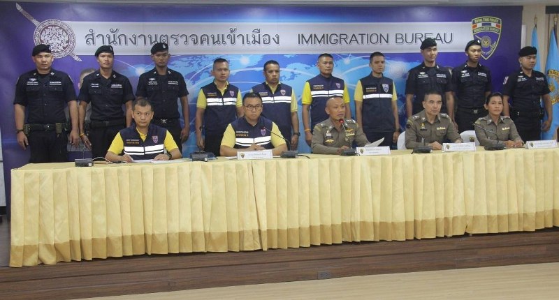 วันนี้ วันอังคารที่ 12 พ.ย.62 เวลา 13.00 น. ณ ห้องประชุมมหาเมฆ ชั้น 4 อาคาร 1 สำนักงานตรวจคนเข้าเมือง (สตม.) สวนพลู : พล.ต.ต.สุรพงษ์ ชัยจันทร์ รอง ผบช.สตม. พร้อมด้วย พล.ต.ต.อาชยน ไกรทอง ผบก.ตม.3 ได้สั่งการให้ พ.ต.อ.ภาส ศิริสุขะ รอง ผบก. ตม.3, พ.ต.อ.สำราญ กลั่นมา ผกก.ตม.จ.กาญจนบุรี บก.ตม.3 พร้อมชุดสืบสวน ตม.จ. กาญจนบุรี บก.ตม.3 ร่วมแถลงข่าวการจับกุมคนร้ายตามหมายจับ ดังนี้