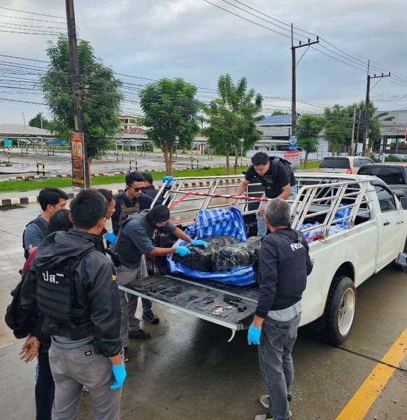 - ยาบ้า จำนวน 3 กระสอบ (ประมาณ 972,000 เม็ด รอตรวจนับอย่างละเอียด)