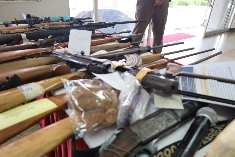 ผู้การฯ เมืองคอน แถลงข่าว ผลการกวาดล้างอาชญากรรมห้วงที่ ๒ ผลยุทธการยึดปืนเมืองคอน ประตูมีกลอน นครมีดี