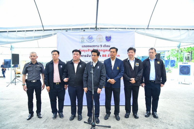 นายสุรชาติ เทียนทอง ผู้ช่วยเลขานุการรัฐมนตรีช่วยว่าการกระทรวงการคลัง กล่าวว่า ภายใต้นโยบายของนายพิชัย ชุณหวชิร รองนายกรัฐมนตรีและรัฐมนตรีว่าการกระทรวงการคลัง และนายจุลพันธ์ อมรวิวัฒน์ รัฐมนตรีช่วยว่าการกระทรวงการคลัง ได้กำชับให้กรมศุลกากรดำเนินการปราบปรามสิ่งผิดกฎหมายทุกรูปแบบอย่างจริงจัง โดยมุ่งเน้นการปราบปรามสินค้าผิดกฎ หมายที่ส่งผลต่อสุขภาพและความปลอดภัยของประชาชน และส่งผลกระทบต่อเศรษฐกิจของประเทศ โดยเฉพาะในเขตพื้นที่รับผิดชอบของสำนักงานศุลกากรท่าเรือแหลมฉบัง ซึ่งเป็นท่าเรือขนาดใหญ่ และมีความสำคัญทางเศรษฐกิจในด้านการนำเข้าและส่งออกสินค้า รวมถึงในพื้นที่จังหวัดชลบุรี ทำให้ในช่วง 3 เดือน ของไตรมาสที่ 3 ในปีงบประมาณ 2568 สามารถจับกุม บุหรี่ไฟฟ้า น้ำยาบุหรี่ไฟฟ้าและอุปกรณ์ 120,000 ชิ้น บุหรี่ต่างประเทศและบุหรี่ไทย 2,300,000 มวน ตู้คีบตุ๊กตา 200 ตู้ เครื่องสำอางไม่มีใบอนุญาต 17,000 ชิ้น สินค้ากระเป๋า รองเท้า หมึกเครื่องพิมพ์ ละเมิดสิทธิ์เครื่องหมายการค้าต่างๆ 9,000 ชิ้น รวมถึงสกัดกั้นสินค้าที่เข้าข่าย เป็นความผิดภายใต้อนุสัญญาบาเซล 1,300 ตัน โดยคิดเป็นมูลค่าการจับกุมและความเสียหายทางเศรษฐกิจกว่า 88 ล้านบาท