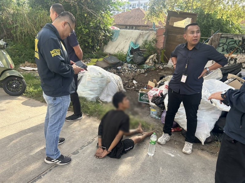 เมื่อวันที่ 31 ก.ค พ.ศ 2568 เวลา17.00 น. พ.ต.อ เอนก สระทองอยู่ ผกก.เมืองพัทยา พร้อมกำลังกว่า 40 นาย สั่งการปิดล้อป่าด้านหลังศาลจังหวัดพัทยา ถนนทัพพระยา หมู่ 10 ต. หนองปรือ อ.บางละมุง จ.ชลบุรี ต่อมาเจ้าหน้าตำรวจชุดสืบสวนและสายตรวจชุด4 สภ.เมืองพัทยาได้ผนึกกำลังตรวจค้นอย่างละเอียดและได้แจ้งให้ชาวบ้านในละแวกทึ่ตรวจค้นช่วยกันตรวจสอบ เพื่อป้องกันอันตราย ในที่สุดก็ได้พบผู้ต้องหาคนดังกล่าว นอนซุกตัวในกองขยะในป่ากล่าวจึงทำการจับกุมตัวได้ โดยใช้เวลาไม่นาน