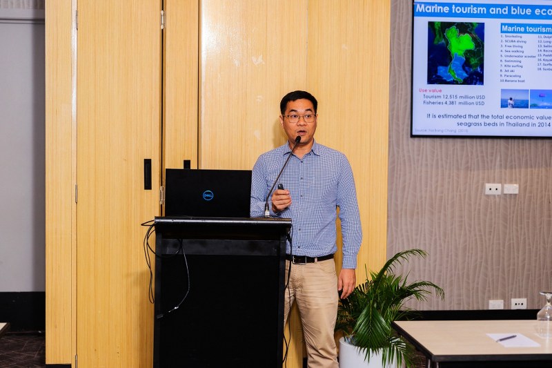 รศ.ดร.ธรรมศักดิ์ ยีมิน ได้นำเสนอโครงการที่พัฒนาขึ้นเพื่อเป็นต้นแบบลดและชดเชยการปล่อยก๊าซเรือนกระจกจากการท่องเที่ยวทางทะเล โดยใช้แอปพลิเคชัน ZERO CARBON ขององค์การบริหารจัดการก๊าซเรือนกระจก (TGO) และสำนักงานคณะกรรมการส่งเสริมวิทยาศาสตร์ วิจัยและนวัตกรรม (สกสว.) คำนวณการปล่อยและกำหนดมาตรการลดในด้านการขนส่ง ที่พัก อาหาร และการจัดการของเสีย ทำให้คาร์บอนฟุตพริ้นท์ลดลงเหลือ 269.37 กิโลกรัมคาร์บอนไดออกไซด์เทียบเท่าต่อทริป พร้อมชดเชยผ่านการอนุรักษ์และฟื้นฟูระบบนิเวศ ซึ่งเป็น Nature-based Solutions สำคัญต่อการกักเก็บคาร์บอน โดยเส้นทางท่องเที่ยวที่นำเสนอครอบคลุมเกาะยักษ์เล็ก เกาะยักษ์ใหญ่ เกาะมะปริง ในหมู่เกาะช้าง จังหวัดตราด และพื้นที่ศักยภาพคาร์บอนสีน้ำเงิน (blue carbon) เช่น ป่าชายเลน รวมถึงกองหินใต้น้ำที่เป็นระบบนิเวศสำคัญต่อการสะสมคาร์บอนและความหลากหลายทางชีวภาพ โครงการนี้สอดคล้องกับนโยบายการท่องเที่ยวอย่างยั่งยืน Global Sustainable Tourism Council (GSTC) แสดงให้เห็นความเป็นไปได้ของการท่องเที่ยวคาร์บอนสุทธิเป็นศูนย์ ผ่านแนวทางบูรณาการ “วัด–ลด–ชดเชย” และการประสานความร่วมมือจากภาครัฐ เอกชน ชุมชน และเครือข่ายนานาชาติ