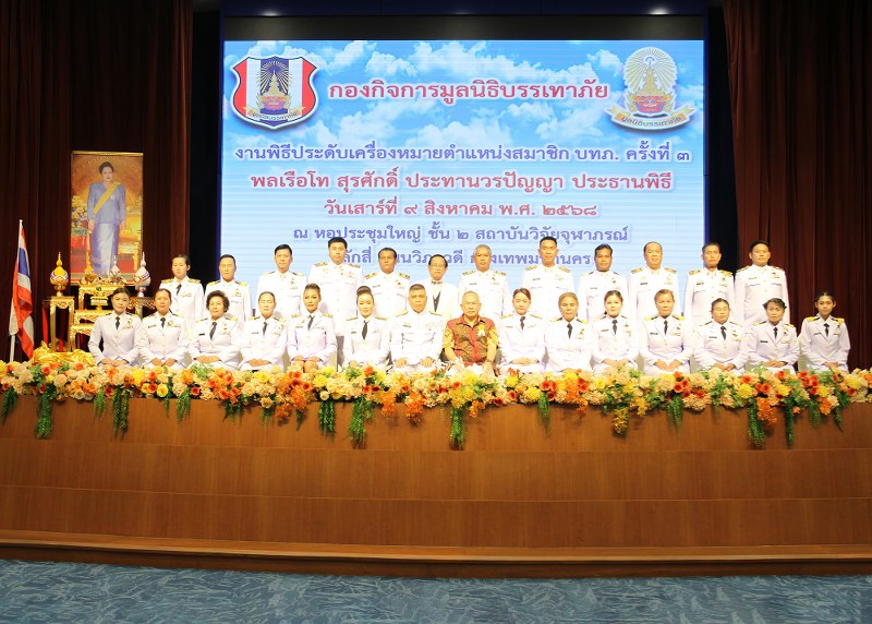 พลเรือโท สุรศักดิ์ ประทานวรปัญญา ประธานพิธีประดับตำแหน่งเครื่องหมายสำหรับสมาชิกมูลนิธิบรรเทาภัย กล่าวแสดงความขอชื่นชมประเทศไทยกำลังเผชิญกับสถานการณ์ต่างๆในหลายพื้นที่ทั่วประเทศ ตามที่เกิดสถานการณ์สู้รบตามแนวชายแดนไทย-กัมพูชา และเกิดเหตุอุทกภัยหลายพื้นที่ทางภาคเหนือ ในความมุ่งมั่นและการเสียสละของสมาชิกมูลนิธิบรรเทาภัยในครั้งนี้ ไม่เพียงแต่เป็นการบรรเทาความเดือดร้อนในชุมชนเท่านั้น แต่ยังสะท้อนให้เห็นถึงจิตสำนึกในการช่วยเหลือสังคม ส่งมอบความห่วงใยต่อผู้ประสบภัย และเป็นตัวอย่างที่ดีของการสร้างคุณค่าทางสังคมและความร่วมมือที่สำคัญเพื่อให้ผ่านพ้นสถานการณ์วิกฤตนี้ไปด้วยกันอย่างยั่งยืน
