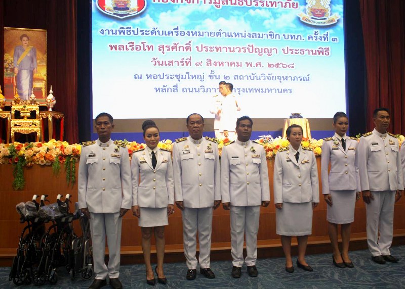 อีกภารกิจ นำทีมสมาชิก บทภ.ปฏิญาณตน เข้าสู่พิธีประดับตำแหน่ง โดยท่าน พลเรือโท สุรศักดิ์ ประทานวรปัญญา ให้เกียรติมาประธานพิธีประดับตำแหน่ง ณ ศูนย์ประชุมใหญ่ ชั้น 2 สถาบันวิจัยจุฬาภรณ์ ถนนวิภาวดี-รังสิต กรุงเทพมหานคร รายนามผู้เข้าร่วมพิธีประดับตำแหน่ง มูลนิธิบรรเทาภัย ครั้งที่ 3 จำนวน 23 ราย ตามรายนามดังต่อไปนี้