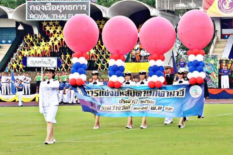 วันนี้ 13 พ.ย.62 พลเรือเอก ลือชัย รุดดิษฐ์ ผู้บัญชาการทหารเรือ เป็นประธานในพิธีเปิดงานสัปดาห์กีฬานาวี ประจำปี 2562 ณ สนามกีฬาราชนาวีสัตหีบ กิโลเมตร 5 อำเภอสัตหีบ จังหวัดชลบุรี โดยมี พลเรือตรี อุทัย ชีวะสุทธิ ผู้บัญชาการหน่วยบัญชาการต่อสู้อากาศยานและรักษาฝั่ง ในฐานะหน่วยเจ้าภาพจัดการแข่งขันฯ ผู้บังคับบัญชาชั้นผู้ใหญ่ในพื้นที่สัตหีบ ข้าราชการ กำลังพลพร้อมครอบครัว เข้าร่วมในพิธีเปิด