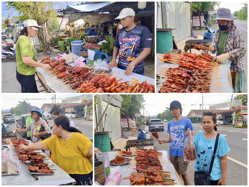 จากการสอบถามลูกค้าหลายคนพูดเป็นคำเดียวกันเลยว่าร้านไก่ย่างร้านนี้อร่อยและถูกมีเอก ลักษณ์เฉพาะตรงที่มีควันนี่แหล่ะ บางวันลูกค้าก็มาตามควันบางวันก็มาตามกลิ่นที่สำคัญร้านไก่ย่างร้านนี้ขายไม่แพงขายเพียงแค่ไม้ละ 10 บาททุกไม้ และไม้เสียบไก่ก็ไม่ต้องไปแกะลวดมัดตรงหัวให้เสียเวลา ปกติร้านไก่ย่างทั่วไปจะใช้ลวดมัดแต่ร้านนี้ใช้ก้านตองมัดแทนลวดไม่ต้องกลัวลวดทิ่มมือ ถ้าใครอยากจะมาซื้อก็สังเกตง่ายๆ วันไหนถ้าร้านไม่เปิดควันก็จะไม่มีก็ต้องอดกินของอร่อย แต่ถ้าวันไหนร้านเปิดก็จะเห็นควันโขมงโฉงเฉง และก็ได้กินไก่ย่างของอร่อยในย่านนี้