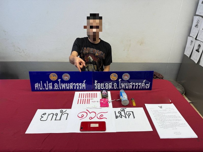 โดยกล่าวหาว่า “จำหน่ายยาเสพติดให้โทษประเภท 1 (ยาบ้า) โดยการมีไว้เพื่อจำหน่ายโดยกระทำเพื่อการค้า และเสพยาเสพติดให้โทษประเภท 1 (ยาบ้า) โดยฝ่าฝืนต่อกฎหมาย” จากนั้น เจ้าหน้าที่ชุดจับกุม จึงควบคุมตัวผู้ต้องหาพร้อมของกลาง ส่งพนักงานสอบสวน สภ.โพนสวรรค์ ดำเนินคดีต่อไป
