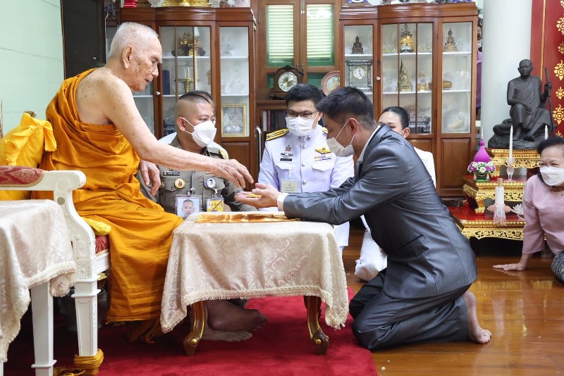 เมื่อวันที่ 6 กันยายน 2568 เวลา 11.00 น. พันตำรวจตรี พีระพัฒน์ สัมฤทธิ์ดีงาม จูงมือว่าที่เจ้าสาว ร้อยโทหญิง ฐิติพร จุลไสย เข้ากราบขอพรและรับน้ำพระพุทธมนต์จาก สมเด็จพระอริยวงศาคตญาณ สมเด็จพระสังฆราช สกลมหาสังฆปรินายก เพื่อความเป็นสิริมงคลสูงสุดของชีวิตคู่ ณ พระวิหารวัดราชบพิธสถิตมหาสีมารามราชวรวิหาร ก่อนทั้งคู่จะจูงมือเข้าสู่ประตูวิวาห์วันเสาร์ ที่ 13 กันยายนนี้